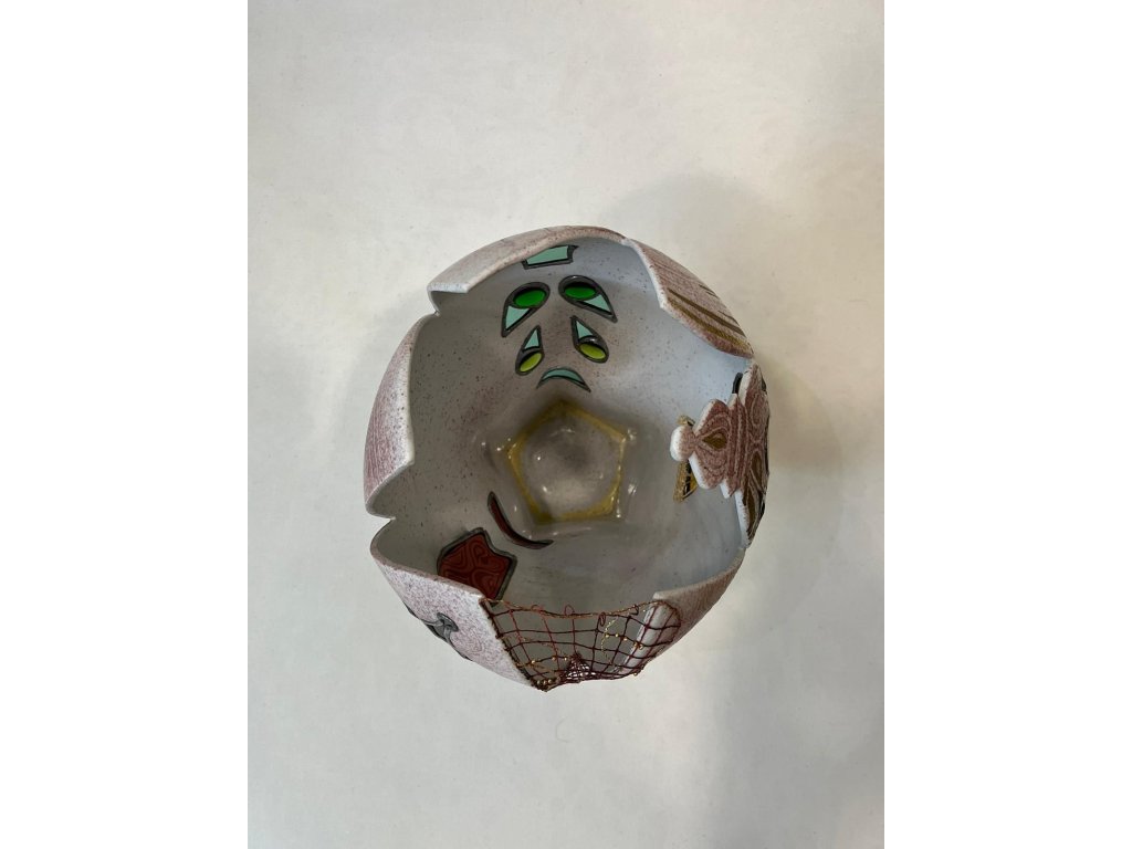 Po začištění pilníky, smirkovými papíry a dalšími hladítky přichází autor k malbě. Ve většině případů jsou využity chloridy kovů podglazurové sole, které se vsáknou přímo do křehkého přežahového střepu.