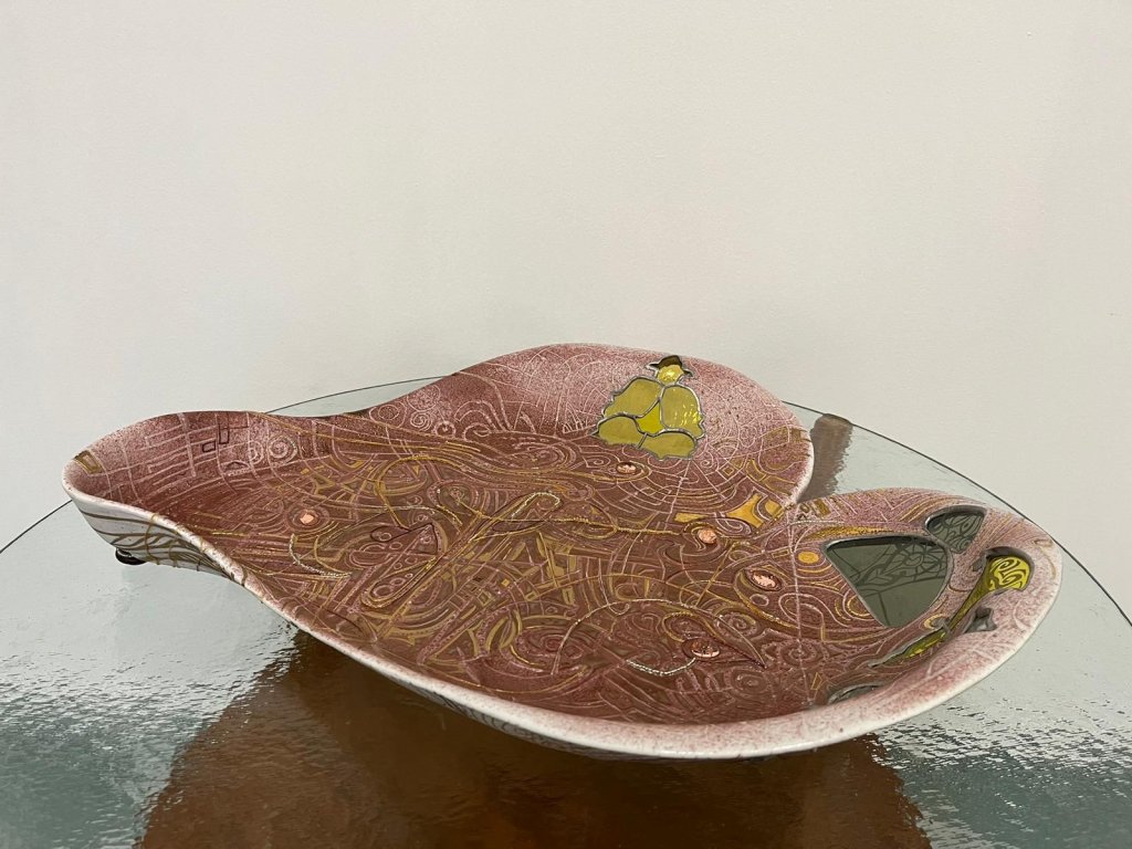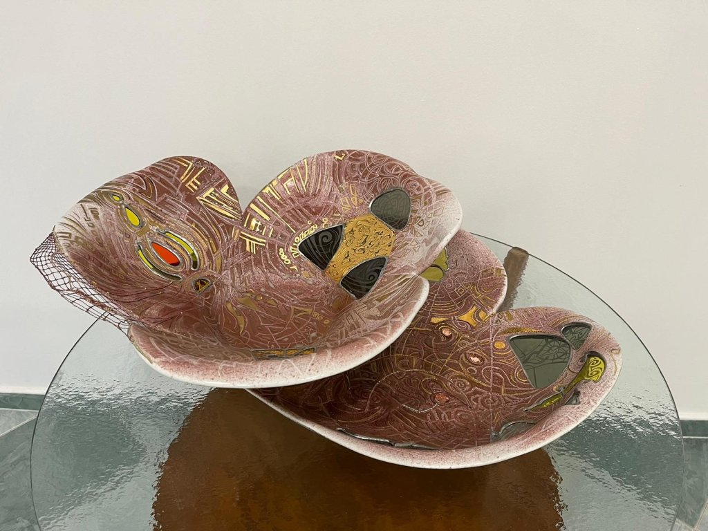 Ve většině případů však po vyjmutí z formy dochází po uschnutí k začištění a následnému jemnému zahlazení. Dalším krokem je takzvaný přežah, kdy odchází více jak 50% vázané vody. Na tento přežah autor zakreslí celou originální kompozici a dochází k identickému prořezu vysokofrekvenční frézkou.