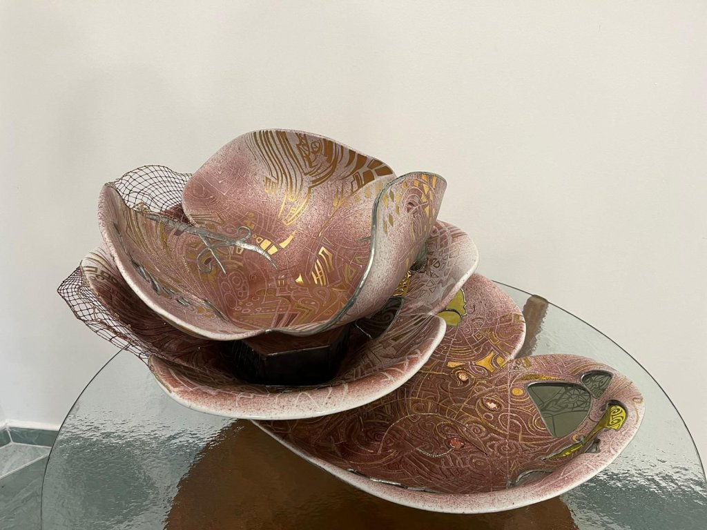 Porcelánové triptychy a tento kvartet jsou vytvořeny z klasického starorolského sněhobílého kaolínu, vypáleného na takzvaný ostrý střep na 1400 stupňů Celsia. Raritou je identický a vždy originální tvar i malba. Vlastní design vzniká na základě sádrové formy, do níž se nalije porcelánová šlika a v některých případech se tvarují jednotlivé dily již za syrova prořezem, ohýbáním a dalšími úpravami. /např. kvartet“ tajemství květů“ /