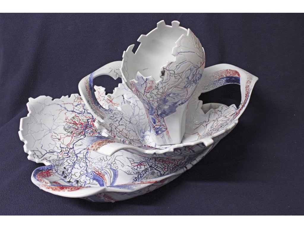 Ve většině případů však po vyjmutí z formy dochází po uschnutí k začištění a následnému jemnému zahlazení. Dalším krokem je takzvaný přežah, kdy odchází více jak 50% vázané vody. Na tento přežah autor zakreslí celou originální kompozici a dochází k identickému prořezu vysokofrekvenční frézkou.